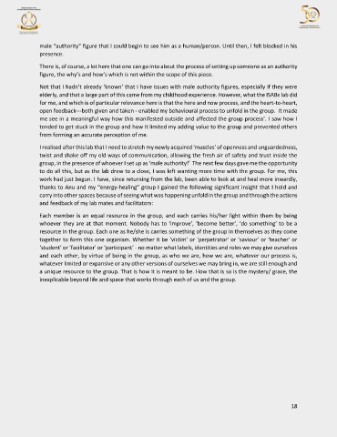 group, in the presence of whoever I set up as ‘male authority!’ The next few days gave me the opportunity