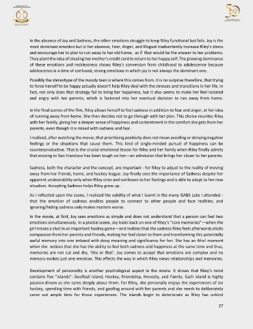 situation. Accepting Sadness helps Riley grow up.