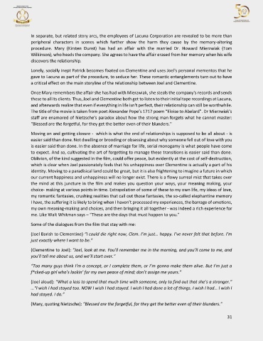 gave to Lacuna as part of the procedure, to seduce her. These romantic entanglements turn out to have